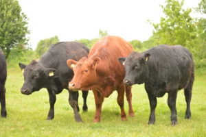 Angusrinder sind robuste, hornlose Rinder mit herrlich marmoriertem, äußerst hochwertigem Fleisch.